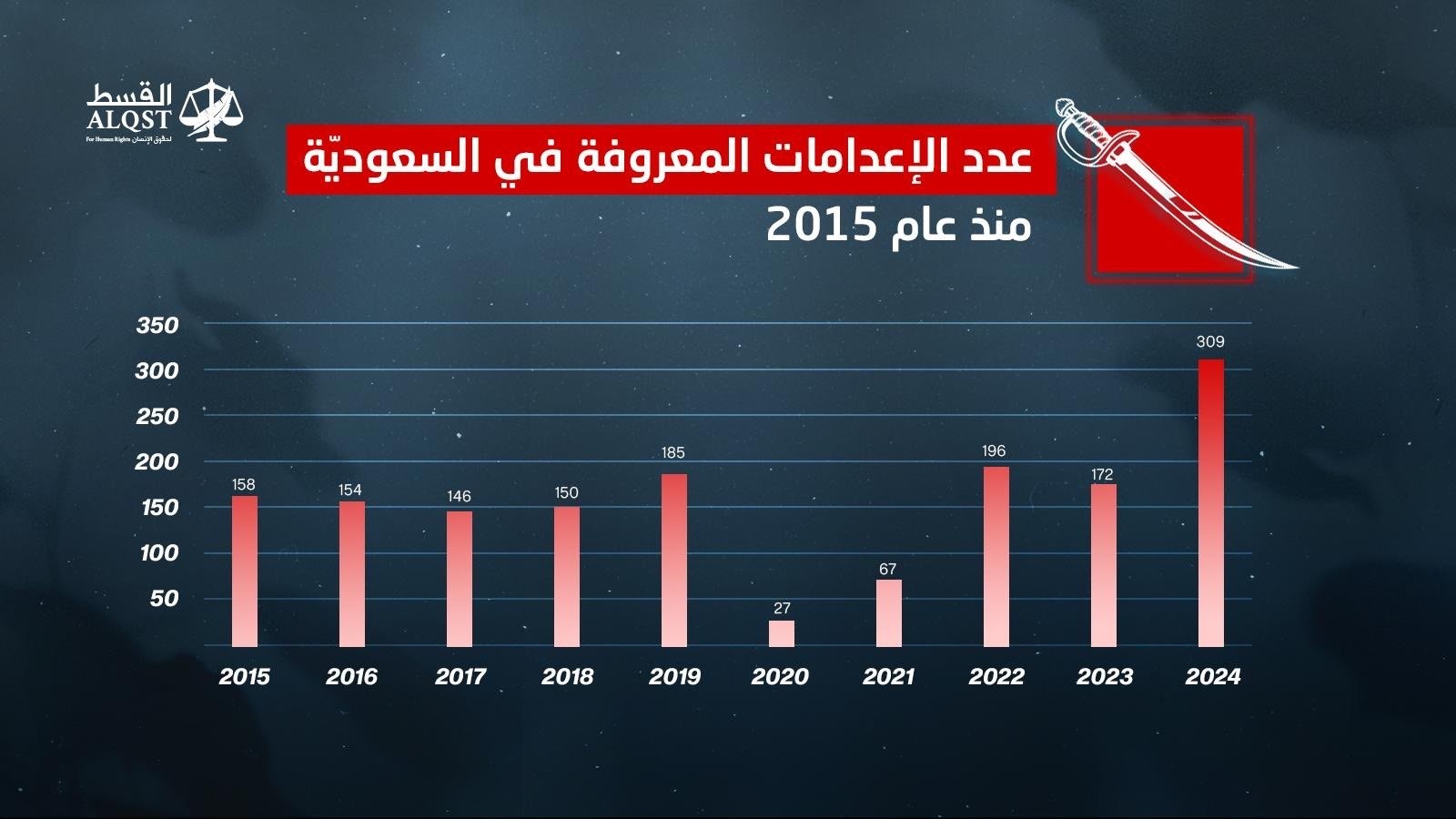 وصل استخدام السعوديّة المتزايد لعقوبة الإعدام إلى مستويات مروّعة في عام 2024، حيث تم إعدام ما لا يقلّ 309 شخصًا حتى 8 ديسمبر، وهو أعلى رقم معروف في التاريخ السعودي. يوضّح هذا الحدث القاتم تجاهل السلطات السعوديّة الصارخ للحق في الحياة ويتناقض مع تعهداتها السابقة بتقليص استخدام عقوبة الإعدام.