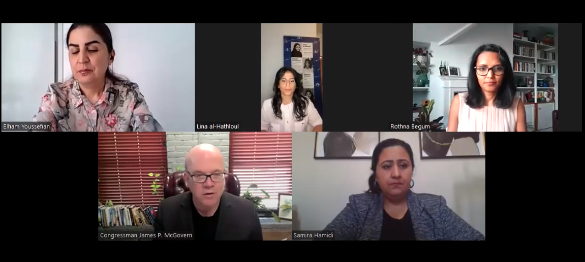في 11 أغسطس 2023، ألقت رئيسة الرصد والمناصرة في منظمة القسط لينا الهذلول، كلمةً في فعالية نظمها عضو الكونجرس جيم ماكجفرن حول حقوق المرأة في الشرق الأوسط وأفغانستان. المقرر عقدها مع لجنة توم لانتوس لحقوق الإنسان ولكن قد اُعترض عليها. شاهدوا الفعالية عبر هذا الرابط.