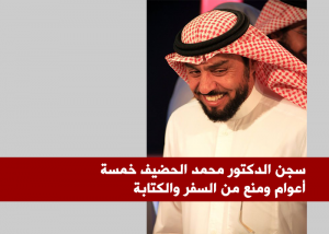 حكمت المحكمة الجزائية المتخصصة بالرياض بسجن الدكتور محمد الحضيف خمسة أعوام، تليها مدة مماثلة منع من السفر، والمنع من الكتابة في وسائل التواصل الاجتماعي. الحضيف اعتقل في 19 مارس 2016 من مطار الملك خالد الدولي بالرياض أثناء عودته من تركيا، وقد حددت السلطات يوم 2 مايو موعدا للنطق بالحكم، ووجه المدعي للحضيف 42 تهمة تتميز معظمها بأنها تهم فضفاضة ومتكررة مع عدد من المعتقلين، وناقشت المحكمة وركزت على أربع منها، وتأجل النطق بالحكم حتى 29 مايو، حيث عقدت جلسة سرية أدين فيها الحضيف بالتهم التالية: