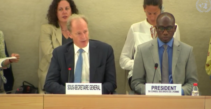 مساعد الأمين العام أندرو غيلمور أثناء تقديمه التقرير الأخير.