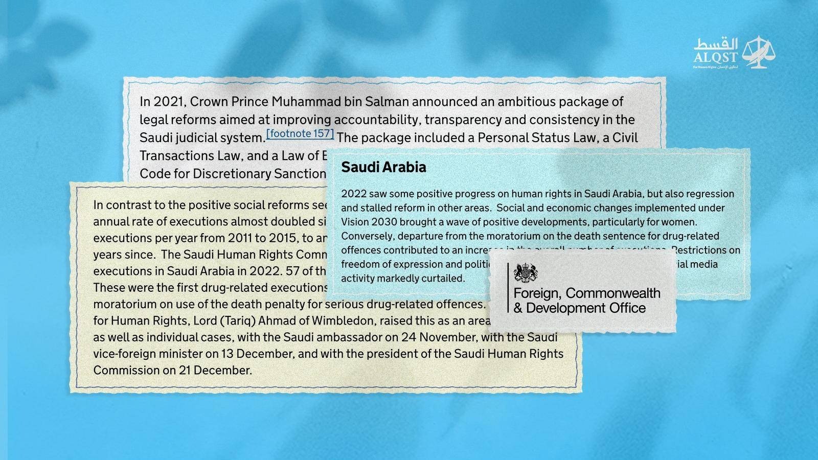 The UK Foreign, Commonwealth & Development Office (FCDO)’s recently published 2022 Human Rights and Democracy Report highlights some of the key human rights issues in Saudi Arabia but does not fully reflect the gravity of the situation there, downplaying or overlooking certain abuses as well as discrepancies between Saudi laws on paper and in practice. ALQST calls once again for the UK to use its close ties with Riyadh much more robustly to challenge abuses and promote respect for human rights.